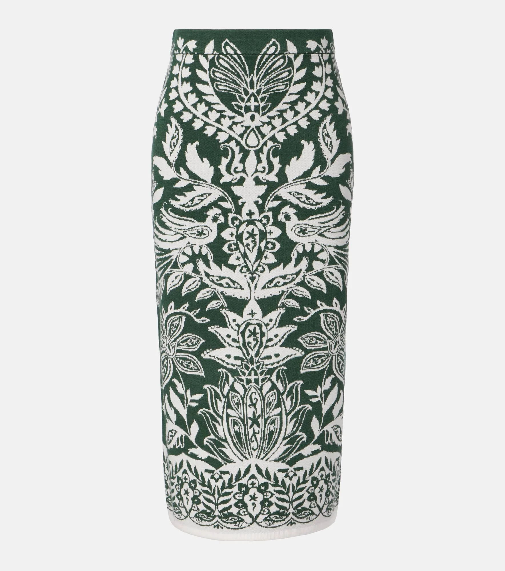 Farm Rio's signature vibrant prints celebrate the brand's Brazilian heritage and invite joyful self-expression. This Miranda midi skirt is presented in a soft knit and decorated with a lush botanical intarsia motif throughout. Product Details - Material: 68% viscose, 32% polyester - Care instructions: hand wash - Made in China - Color: green - Designer color name: Miranda Dark Green - Elasticated waistband - Item number: P01150807 Size & Fit - True to size - Elasticated waist - Stretchy fabric - The model seen in the picture is 178cm-5'10" and wearing a size XS