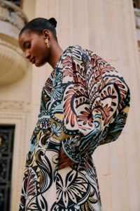 Embrace vibrant energy with the Multicolor Balamana Maxi Dress by FARM Rio. Crafted from 100% Certified Organic Cotton, its flowing silhouette dances with bold, tropical-inspired patterns in a kaleidoscope of colors. The deep V neckline enhances its feminine allure, while airy layers create a graceful movement that feels as light as a breeze. This dress brings a joyful spirit and sustainable comfort together in perfect harmony. - Closure: Invisible Zipper At Side Seam - Button type: Plastic Button - Pockets: Side Seam Pockets - Sleeve type: Long Sleeve Ref.: 344136 Composition 100% COTTON Care Instructions MACHINE WASH GENTLE CYCLE, DO NOT BLEACH, DO NOT TUMBLE DRY, LINE DRY, IRON AT LOW HEAT, DO NOT DRY CLEAN Fabric origin: China Product manufacturing: China Product printing: China