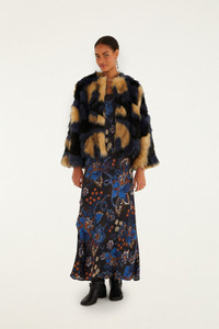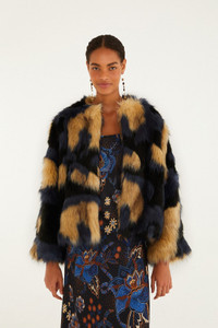Embrace cozy sophistication with the Multicolor Fur Coat from FARM Rio. This outerwear marvel dazzles in a swirling patchwork of warm beige, deep black, and smoky blue hues, blending playful charm with bold appeal. Its high neckline frames the silhouette with a refined yet inviting touch, while the voluminous sleeves add a sense of relaxed elegance. This coat is designed for those who cherish softness wrapped in vibrant expression. - Closure: Hook And Eye - Pockets: Welt Pockets - Sleeve type: Long Sleeve Ref.: 340267 Composition 85% ACRYLIC 15% POLYESTER Care Instructions DO NOT WASH, DO NOT BLEACH, DO NOT TUMBLE DRY, DO NOT IRON, DRY CLEAN PETROLEUM SOLVENT ONLY Fabric origin: China Product manufacturing: China Product printing: China