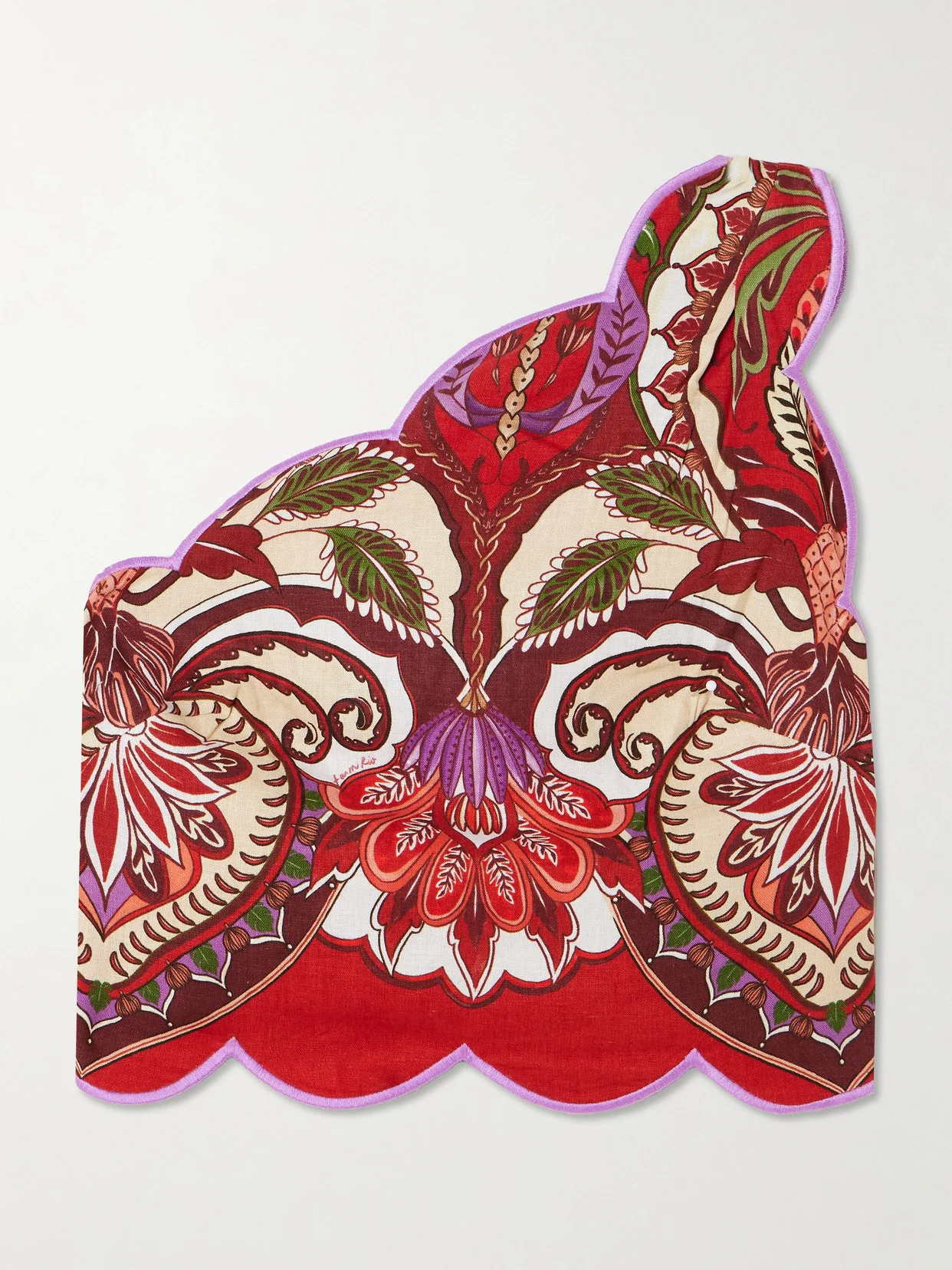 Odara One-shoulder Scalloped Printed Linen-blend Top