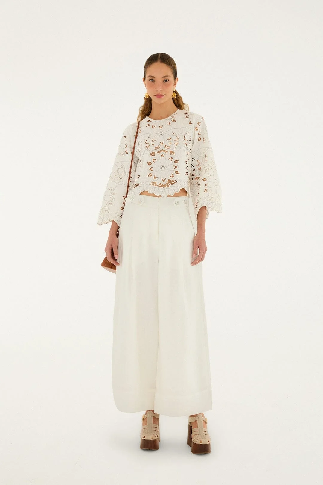 Embrace effortless elegance with the Off-White High Waisted Euroflax™ Premium Linen Pants from FARM Rio. Crafted in breathable, natural linen, these pants feature a flattering high waist that elongates the silhouette, while the relaxed, wide-leg cut sways gently with every step. The soft off-white hue offers a timeless canvas, perfect for pairing with vibrant patterns or earthy tones, inviting playful, sunlit days with a touch of refined comfort. - Closure: Zipper - Button type: Plastic Buttons - Fly: Functional - Pockets: Side Seam Pockets - Leg fit: Wide Ref.: 368333 Composition 100% LINEN Care Instructions MACHINE WASH, GENTLE CYCLE, DO NOT BLEACH, TUMBLE DRY LOW, IRON AT LOW HEAT, DRY CLEAN WITH ANY SOLVENT EXCEPT TRICHLOROETHYLENE Fabric origin: China Product manufacturing: China Product printing: China