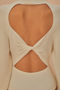 Embrace warmth and sophistication with the Off-White Knit Bodysuit, designed to enchant with its unique high neckline and gentle, embracing silhouette. The intricate knit pattern adds a subtle allure, while the dramatic open back with a delicate twist detail offers a surprising touch of playfulness. Crafted from soft knit fabric in a serene off-white hue, this piece is a versatile charm, perfect for layering or making a subtle statement on its own. Ref.: sku_329661 Composition 30% POLYESTER 24% VISCOSE 24% POLYAMIDE 22% ACRYLIC Care Instructions HAND WASH SEPARATELY, DO NOT BLEACH, DO NOT TUMBLE DRY, DRY FLAT, IRON AT LOW HEAT, DRY CLEAN WITH ANY SOLVENT EXCEPT TRICHLOROETHYLENE Product manufacturing: CHINA Product printing: CHINA