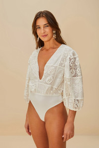 Embrace a touch of romance with the off-white rosy eyelet puff sleeve bodysuit. Featuring an alluring V neckline, this piece showcases exquisite floral eyelet patterns that dance across the fabric. The puff sleeves add a whimsical, textured flair that complements the delicate design. Perfect for adding a layer of sophistication with its elegantly crafted silhouette, it's an invitation to express your unique style with warmth and grace. - Closure: Snap fastaners - Button type: Metal button - Sleeve type: Short sleeve Ref.: sku_335864 Composition 100% COTTON Care Instructions MACHINE WASH GENTLE CYCLE, DO NOT BLEACH, DRY FLAT, IRON AT MEDIUM HEAT, DO NOT DRY CLEAN Product manufacturing: CHINA Product printing: CHINA