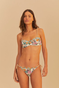 Embrace the playful charm of the Off-White Sweet Bloom Underwire Bikini Top. Adorned with vibrant florals on a gentle off-white canvas, this bikini top features a flattering sweetheart neckline that beautifully complements the feminine silhouette. The intricate floral pattern and delicate braided straps evoke a sense of effortless elegance and warmth, perfect for sunlit days by the water. Indulge in its dreamy design and let your style bloom. Ref.: sku_332413 Composition 87% NYLON 13% ELASTANE Care Instructions MAXIMUM WASHING TEMPERATURE 30°C, MILD PROCESS, DO NOT BLEACH, TUMBLE DRYING POSSIBLE, DO NOT IRON, DO NOT DRY CLEAN