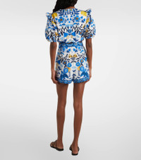 This cotton jumpsuit from Farm Rio is crafted from pure cotton and showcases a vibrant allover print. This design features a cinched waist and a wide-leg silhouette. Product Details - Material: 100% cotton - Care instructions: machine wash at 30 degrees - Made in China - Designer color name: Romantic Orchard Blue - Item color: blue, multicolor - Closure: buttoned front - Pockets: side slit pockets - Detachable belt - Item number: P01056496 Size & Fit - True to size - Cinched waist - Non-stretchy fabric - Wide-leg - The model seen in the picture is 178cm-5'10" and wearing a size XS