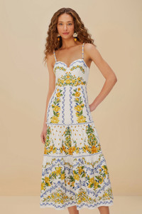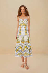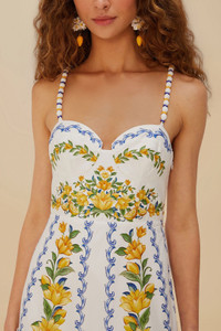 Embrace the essence of summer with the Off-White Sicily Organic Cotton Midi Dress. Crafted from responsible materials, this dress features a captivating sweetheart neckline and playful shoulder straps. The vibrant floral patterns in yellow and green dance across the fabric, evoking a joyful, dreamy vibe. Its flowing silhouette offers breezy elegance and timeless charm, perfect for sunlit days and star-filled evenings. Discover a piece that's both refreshing and enchanting. - Closure: Invisible zipper at side seam - Sleeve type: Sleeveless 100% Certified Organic Cotton: it has proven a lower environmental impact than conventional cotton, as it reduces water usage, greenhouse gas emissions, and the amount of chemicals used. Ref.: sku_336275 Composition 100% COTTON Care Instructions HAND WASH SEPARATELY, DO NOT BLEACH, DO NOT TUMBLE DRY, LINE DRYING, IRON AT LOW HEAT, DO NOT DRY CLEAN Product manufacturing: CHINA Product printing: CHINA