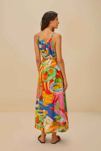 Embrace the vibrant spirit of a summer day with the multicolor summer picnic midi dress. This playful masterpiece features a captivating V neckline and a cascade of warm, vivid hues in a delightful mix of patterns, evoking a whimsical escape. The flowing silhouette and subtle gathers add a touch of effortless elegance, perfect for every carefree moment. Let its joyful design envelop you in pure delight. - Pockets: Side seam pockets - Sleeve type: Sleeveless Ref.: sku_336749 Composition 100% COTTON Care Instructions WASH WITH SIMILAR COLOURS; DO NOT BLEACH; TUMBLE DRY LOW; IRON ON REVERSE; DRY CLEAN Product manufacturing: INDIA Product printing: INDIA