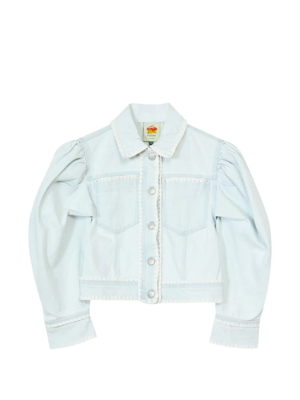 puffed sleeves trim jacket Highlights - Light blue - Trim - Collared - Long puffed sleeves - Front button fastening - Front flap pockets Imported Composition Fabric 100% Washing instructions Read Manufacturer Guidelines