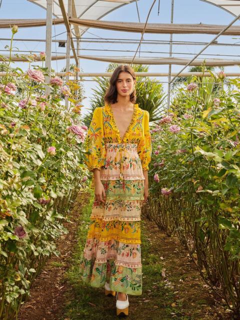 Embrace the vibrant spirit of nature with the Red Garden Delight Long Sleeve Midi Dress by FARM Rio. This enchanting piece features a mesmerizing blend of colorful florals that dance across a backdrop of rich red hues. The fluid silhouette, enhanced by a playful V neckline, exudes effortless charm, while the gentle flow of the long sleeves ensures an elegant and captivating look. Perfect for adding a touch of joyous elegance to any occasion. Ref.: sku_331846 Composition 53% COTTON 47% VISCOSE Care Instructions MACHINE WASH GENTLE CYCLE, DO NOT BLEACH, DRY FLAT, IRON AT MEDIUM HEAT, DO NOT DRY CLEAN Product manufacturing: CHINA Product printing: CHINA