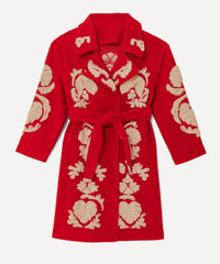 DETAILS Fleece coat Relaxed fit Soft, brushed texture Notched collar Double-breasted front Concealed snap closure Waist ties Slash pockets Cream floral pattern COMPOSITION & CARE 70% Polyester; 30% Wool Hand wash