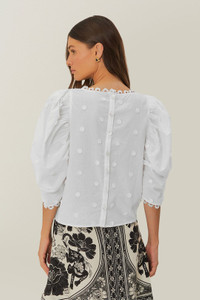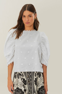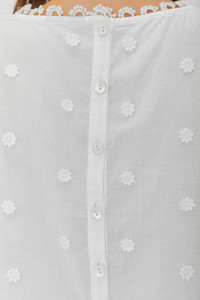Bring whimsy to your wardrobe with the Off-White 3D Flowers Blouse, adorned with delicate floral appliques that add a textured, romantic touch. This charming piece features puff sleeves and a flirty round neckline trimmed with eyelet lace, offering a hint of nostalgia. Crafted in a serene off-white hue, its airy silhouette and playful details epitomize effortless elegance, perfect for sun-drenched days and balmy evenings alike. Ref.: sku_338614 Composition 100% COTTON Care Instructions MACHINE WASH, GENTLE CYCLE, DO NOT BLEACH, DO NOT TUMBLE DRY, LINE DRY, IRON AT MEDIUM HEAT, DO NOT DRY CLEAN Product manufacturing: INDIA Product printing: INDIA