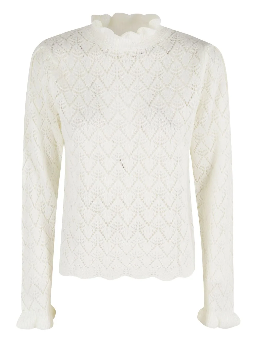 ruffled-collar top Highlights - Beige - Ruffled hem - Ruffled cuffs - Mock neck Imported Composition Acrylic 100% Washing instructions Read Manufacturer Guidelines