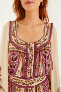 Embrace effortless charm in the Sand Delicate Ainika Long Sleeve Belted Mini Dress from FARM Rio. Featuring a flattering square neckline and a playful belted waist, this dress beautifully sculpts your silhouette. Its sandy hues intertwine with subtle textures, creating a soft, sun-kissed glow. The long sleeves add a gentle elegance, while the airy mini length invites movement and warmth. Perfectly balancing relaxed comfort with vibrant spirit. - Closure: Center Front Buttons - Button type: Fabric Covered Button - Sleeve type: Long Sleeve Ref.: 344228 Composition 100% VISCOSE Care Instructions MACHINE WASH GENTLE CYCLE, DO NOT BLEACH, DO NOT TUMBLE DRY, LINE DRY IN THE SHADE, IRON AT LOW HEAT, DO NOT DRY CLEAN Fabric origin: India Product manufacturing: India Product printing: India