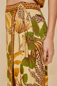 Embrace the vibrant allure of nature with the Sand Foliage Sketch LENZING™ ECOVERO™ Euroflax™ Midi Skirt. This exquisite piece showcases an artful array of earthy tones and lush botanical prints, creating a tapestry of warmth and elegance. Its flowing silhouette and gentle side slit lend a graceful movement, while the delicate waist tie adds a playful touch. Crafted from responsible materials, it’s a perfect blend of style and conscience. - Closure: Tie Euroflax™ Premium Linen: certified GMO-free plant fiber produced without artificial irrigation that has guaranteed traceability and proven comfort, thermoregulation, moisture management, and breathability. Ref.: sku_336484 Composition 55% LINEN 45% VISCOSE Care Instructions HAND WASH SEPARATELY, DO NOT BLEACH, DO NOT TUMBLE DRY, LINE DRYING, IRON AT LOW HEAT, DO NOT DRY CLEAN Product manufacturing: CHINA Product printing: CHINA