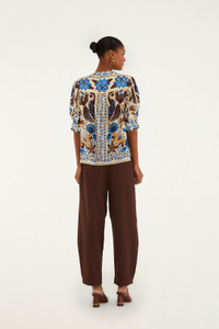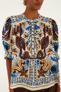 Discover elegance with the Sand Nature Land Blouse by Farm Rio, a celebration of earthy tones and captivating patterns. This enchanting piece features a high neckline that gracefully complements its flowing silhouette. Delight in its vibrant blend of colors reminiscent of sunlit landscapes, while the intricate detailing adds a playful touch of sophistication. Perfect for embracing both warmth and style, this blouse invites endless opportunities to express your unique flair. - Closure: Center front buttons - Button type: Plastic button - Sleeve type: Short sleeve Ref.: sku_336553 Composition 60% COTTON 40% VISCOSE Care Instructions MACHINE WASH GENTLE CYCLE, DO NOT BLEACH, DRY FLAT, IRON AT MEDIUM HEAT, DO NOT DRY CLEAN Product manufacturing: CHINA Product printing: CHINA