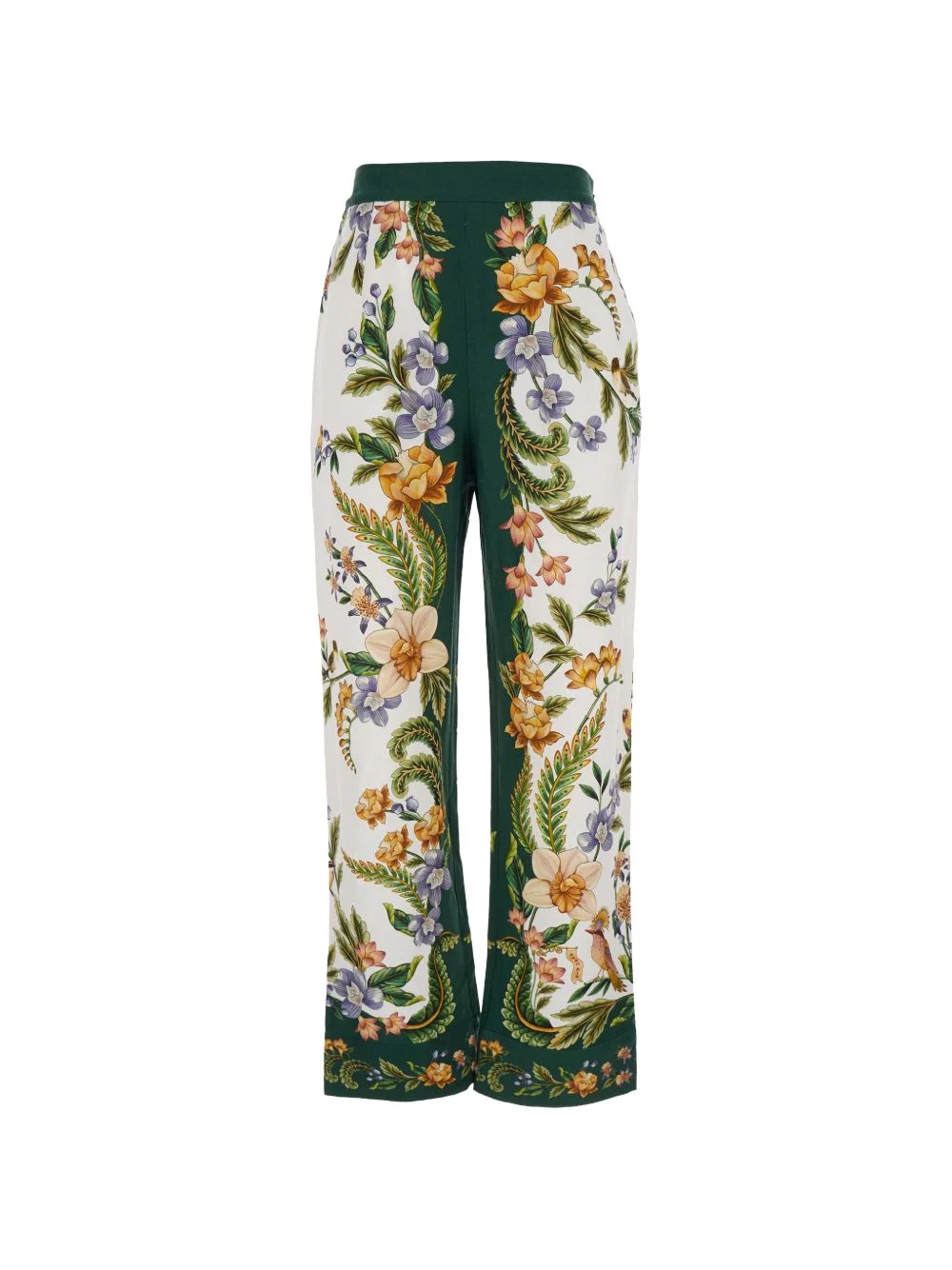 floral-print trousers Highlights - White/green/multicolour - Floral print - Elasticated waistband - Side seam pockets Imported Composition Linen/Flax 55%, Viscose 45% Washing instructions Machine Wash
