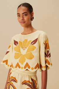 Meet the sand summer cutwork Euroflax™ premium linen blouse, where tropical elegance meets effortless charm. This blouse features a round neckline and delicate cutwork patterns that dance across its lightweight fabric. The warm, sand-hued linen, crafted from responsible materials, beautifully embraces the spirit of summer. Flowing gracefully with a relaxed fit, it’s perfect for sunlit adventures, offering a timeless silhouette that celebrates both comfort and style. - Closure: Keyhole with button - Button type: Plastic button - Sleeve type: Short sleeve Euroflax™ Premium Linen: certified GMO-free plant fiber produced without artificial irrigation that has guaranteed traceability and proven comfort, thermoregulation, moisture management, and breathability. Ref.: sku_336588 Composition 100% LINEN Care Instructions MACHINE WASH GENTLE CYCLE, DO NOT BLEACH, DO NOT TUMBLE DRY, LINE DRY, LOW IRON, DO NOT DRY CLEAN Product manufacturing: INDIA Product printing: INDIA