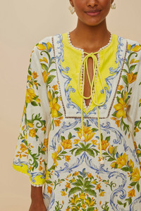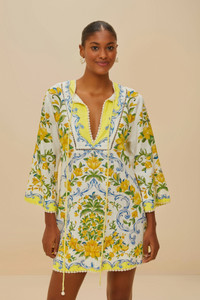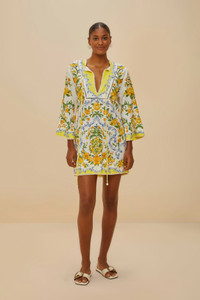 Embrace timeless elegance with the off-white sicily LENZING™ ECOVERO™ euroflax™ mini dress from FARM Rio. Crafted from responsible materials, this delightful piece showcases a playful round neckline and an enchanting silhouette. The dress is adorned with vibrant botanical patterns that evoke the lush spirit of Brazil, capturing the essence of carefree summer days. Flowing gently with every step, it invites you to revel in its light, airy charm. - Sleeve type: Long sleeve LENZING™ ECOVERO™: the eco-responsible fibers generate up to 50% lower emissions and water impact compared to generic viscose. Ref.: sku_336717 Composition 55% LINEN 45% VISCOSE Care Instructions HAND WASH SEPARATELY, DO NOT BLEACH, DO NOT TUMBLE DRY, DRY FLAT, IRON AT LOW HEAT, DRY CLEAN WITH ANY SOLVENT EXCEPT TRICHLOROETHYLENE Product manufacturing: CHINA Product printing: CHINA