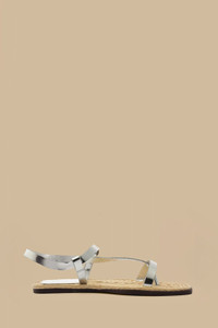 Step into effortless elegance with the Silver Cross Strap Sandal by FARM Rio. These sandals feature a graceful cross-strap design enhanced with subtle embroidery, perfect for sunlit strolls. Crafted from responsible materials, the bright silver hues bring a touch of modern sophistication. The natural-toned sole adds a gentle contrast, completing a look that's both charming and versatile. Let your feet revel in playful comfort and style. Ref.: sku_344340 Composition Leather Upper & Synthetic Sole