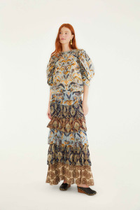 The Blue Snake Garden 3D Applique Blouse from FARM Rio enchants with its soft, fluid round neckline and puffed sleeves that add captivating volume. Its intricate garden-inspired print bursts with warm golds and blues, woven with delicate 3D floral appliques that invite touch. A tender harmony of nature and art, this blouse captures whimsy and elegance, effortlessly blending comfort with sophisticated charm for moments that feel both intimate and joyous. - Closure: Center Back Buttons - Button type: Plastic Button - Sleeve type: Short Sleeve Ref.: 339738 Composition 100% COTTON Care Instructions MACHINE WASH GENTLE CYCLE, DO NOT BLEACH, DO NOT TUMBLE DRY, LINE DRY, LOW IRON, DO NOT DRY CLEAN Fabric origin: India Product manufacturing: India Product printing: India