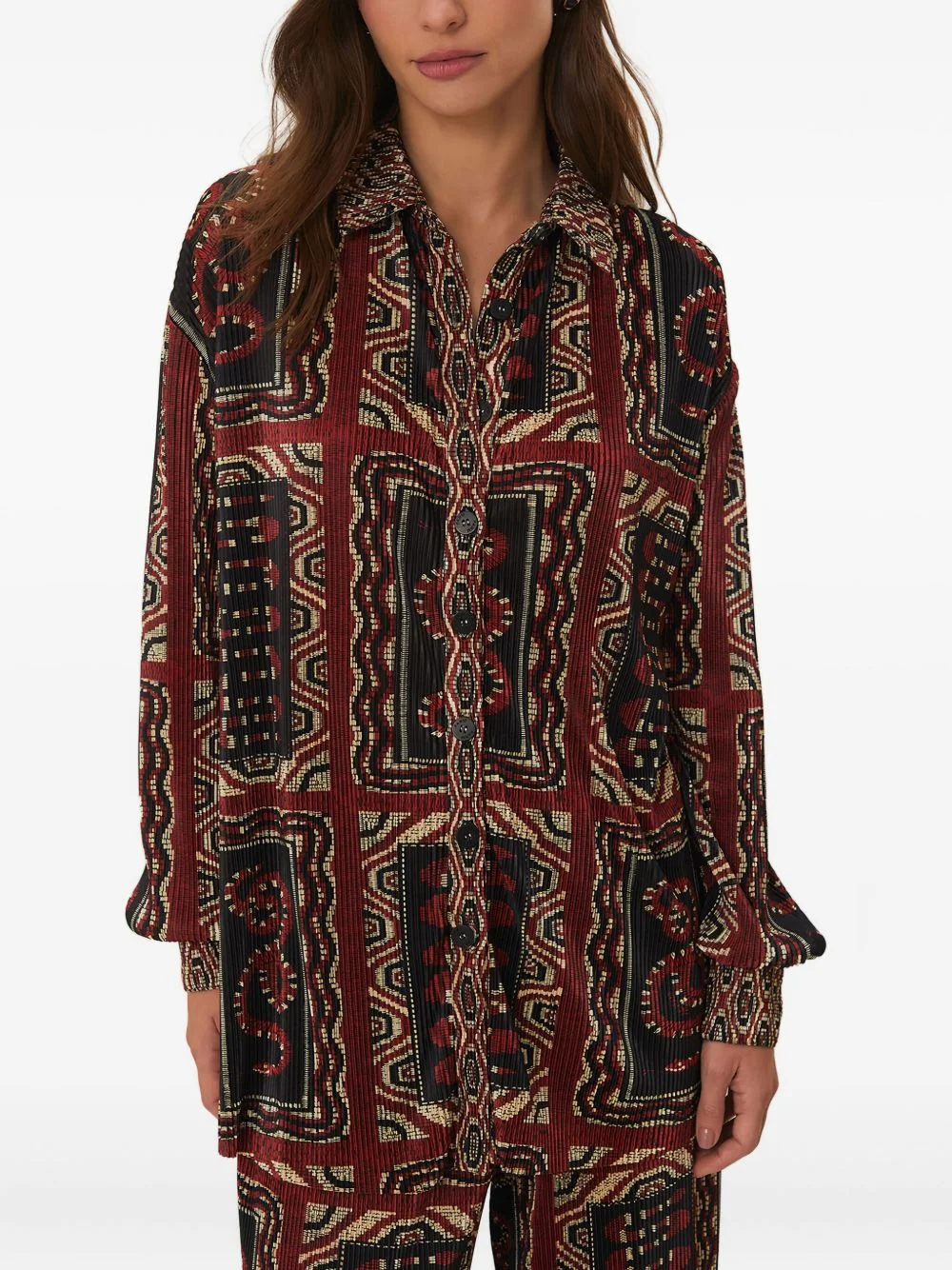Snake Scarves-print pleated shirt Highlights - Black - Pleated - All-over graphic print - Long sleeves - Button fastening - Collared neck Imported Composition Polyester 100% Washing instructions Machine Wash