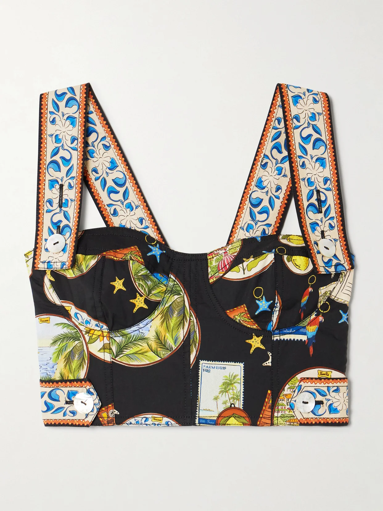 Farm Rio brings its quintessentially joyful style to this breezy cotton top. Printed with vibrant, souvenir-inspired motifs, it has a sweetheart neckline and a shirred back for a flexible fit. Complete the set with the matching skirt.