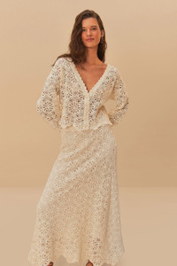 Embrace timeless elegance with the Off-White Flower Crochet Skirt from FARM Rio. This skirt is beautifully crafted with intricate floral crochet patterns that evoke a sense of delicate sophistication. The flowing silhouette offers a graceful fit, while the off-white hue adds a touch of purity and charm. Perfect for creating effortlessly chic looks, this piece captures the essence of playfulness and elegance in one stunning design. FARM Rio Ref.: sku_338905 Composition 60% COTTON 40% ACRYLIC Care Instructions HAND WASH SEPARATELY, DO NOT BLEACH, DO NOT TUMBLE DRY, DRY FLAT, IRON AT LOW HEAT, DRY CLEAN WITH ANY SOLVENT EXCEPT TRICHLOROETHYLENE Product manufacturing: CHINA Product printing: CHINA