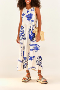 Make a Brazil-inspired statement all season long with the White Rainha Das Aguas T-Shirt Dress! It has the coziest fit alongside a print that shows your love for tropical elements. You’ll feel even more Summer-ready if you invite fresh FARM Rio sandals, sneakers & mules to have fun all around, from days by the beach to date nights (and all places in between!). 100% Certified Organic Cotton: it has proven a lower environmental impact than conventional cotton, as it reduces water usage, greenhouse gas emissions, and the amount of chemicals used. details • Easy, relaxed fit • Crew neck • Maxi length • Tiered skirt Ref.: sku_303428 Composition 100% Organic Cotton Care Instructions Wash at or below 30ºC; Do Not Bleach; Tumble Dry, Low Temp; Iron Low Temp; Dry Clean, Any Solvent Except Trichloroethylene; Line Dry