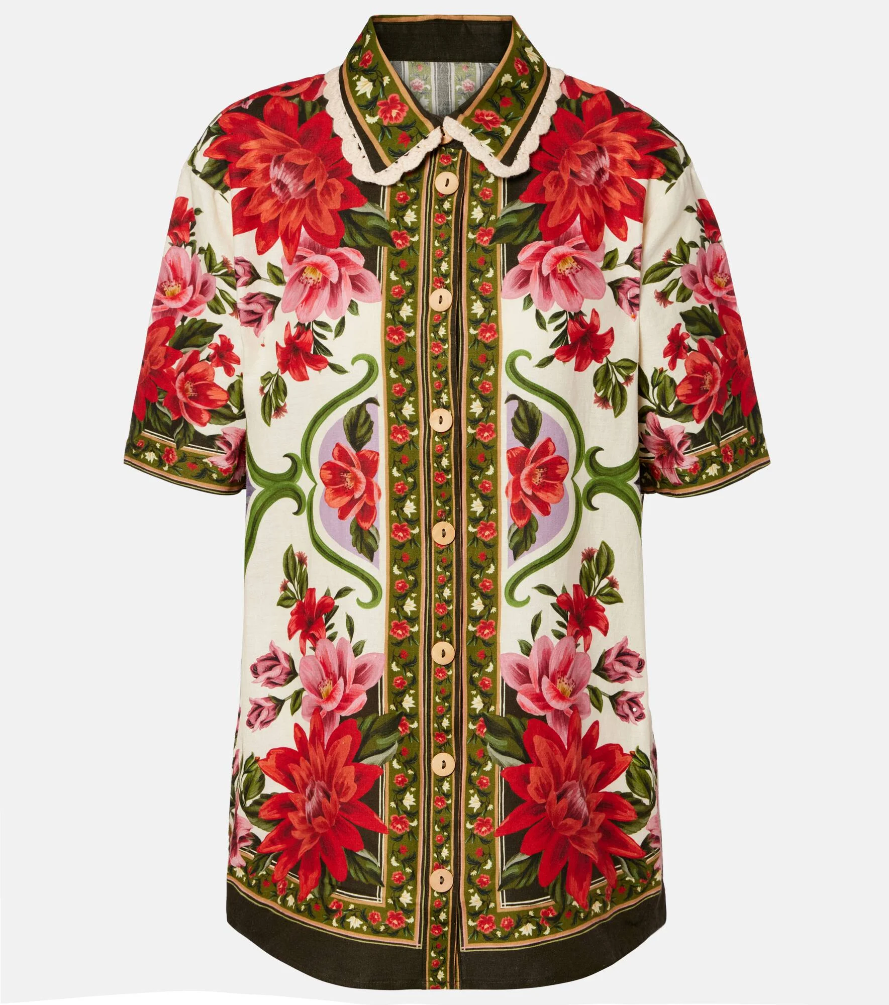 Farm Rio's signature vibrant prints celebrate the brand's Brazilian heritage and invite joyful self-expression. This linen-blend shirt features an oversized silhouette with a colorful floral motif and a crochet-trimmed collar. Product Details - Material: 55% linen, 45% viscose - Care instructions: machine wash at 30 degrees - Made in China - Color: multicoloured - Designer color name: Floral Paula Black - Item color: multicolor - Closure: buttoned front - Item number: P01120863 Size & Fit - True to size - For a closer fit, we recommend taking one size down - Dropped shoulders - Oversized - Non-stretchy fabric - Falls below the hip - The model seen in the picture is 178cm-5'10" and wearing a size XS