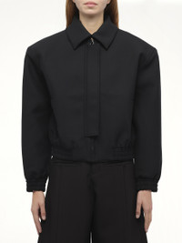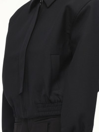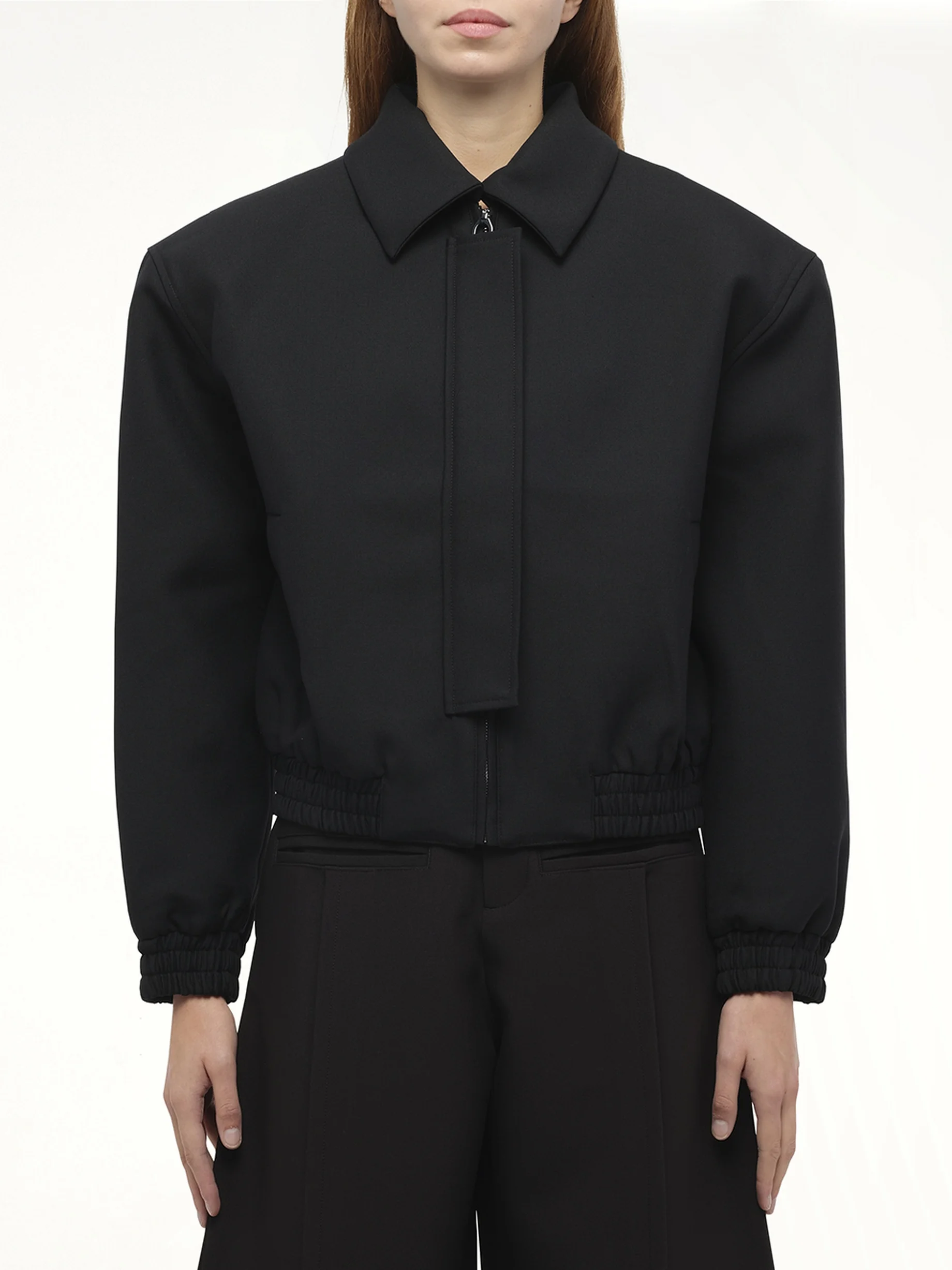 Fax Copy Express's Zip Shoulder Jacket in Black, combining urban style with functional details. This jacket features a bold zip shoulder design and a sleek, tailored fit for a sharp and modern look. - Composition: 51.5% Polyester 28.9% Sheep wool 19.6% Viscose fibre - Zip shoulder detailing for a unique twist - Tailored fit that flatters the silhouette - Front zip closure for easy wear - Soft, durable fabric for comfort and style - Made in China Model is 175 cm and wears size S. SKU: CUJK01W01BK