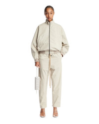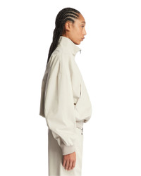Fear Of God Beige Bomber Jacket with Zipper. Made of beige technical fabric, featuring a stand-up collar and long sleeves. It has a front zip closure with contrast zipper, dropped shoulders, side pockets, and ribbed tone-on-tone hem and cuffs. Regular fit. Aline is 180 cm and she is wearing size S. DETAILS Model: FGE230327PON_CEMENT Composition: 51% POLIAMMIDE, 7% ELASTAN, 42% POLIESTERE; FODERA: 100% POLIESTERE Made in: ROMANIA Season: SS25