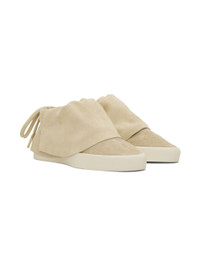 Low-top suede sneakers in beige. · Drawstring at padded foldover collar · Neoprene and mesh lining · Rubberized logo patch at heel · Rubber sole Supplier color: Sand Upper: leather. Sole: rubber. Made in Italy 241782F128001