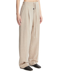 Beige Wool and Cotton Drawstring Pants