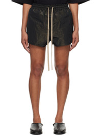 Double-faced crinkled polyester taffeta shorts. · Drawstring at elasticized waistband · Two-pocket styling · Leather logo patch at front · Vent at out seams Supplier color: Black 100% polyester. Made in Italy 241782F088001