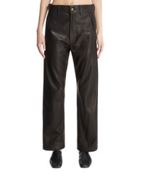 Fear Of God Black Leather Pants. Black leather, regular waist, front button and zip closure, belt loops, four-pocket design, straight leg, regular fit. Perla is 176 cm and she is wearing size 44. DETAILS Model: FG25FW55552LTH001 Composition: 100% Leather Made in: ITALY Season: FW25-26