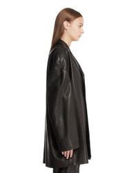 Fear Of God Black Oversized Leather Jacket. Black leather, long sleeves, classic collar, front button closure, dropped shoulders, oversized fit, iconic logo label at the back. Perla is 176 cm and she is wearing size S. DETAILS Model: FG25FW50510LTH001 Composition: 100% Leather; Lining: 53% Cupro, 47% Polybutilene Made in: ITALY Season: FW25-26