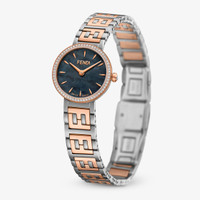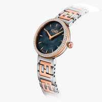 Polished and brushed rose gold-colored stainless steel case, bezel set with 64 diamonds, approx. 0.14 carat, crown set with one diamond, approx. 0.02 carat. Black mother-of-pearl dial, rose gold-colored indexes, rose gold-colored hands. Satin-brushed stainless steel bracelet with polished rose gold-colored stainless steel FF logo central links, folding buckle. Composition: : 100%stainlesssteel100%diamonds(65stones~0.16cts)100%motherofpearl Model height: null Size worn: null Product Code: FOW913A85GF0QA1 Instruction Manual: : :