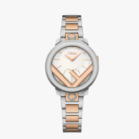 Polished stainless steel casing, rose gold-color stainless steel F insert. Off-center, curved, silver and white opal face, gray minute track, rose-gold indices and hands. Polished stainless steel bracelet with central links in rose gold-color stainless steel, F is Fendi logo at the 12 and 6 o’clock and stainless steel folding buckle. Composition: 100% stainless steel, 100% rose IP in two tones Product Code: FOW802A2YLF0QA0 Instruction Manual: