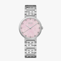 Polished and brushed stainless steel case, crown set with 1 white onyx. Genuine pink opal dial set with 12 diamonds, approx. 0.06 carat, silver-colored indices, silver-colored hands. Satin-brushed stainless steel bracelet with polished FF logo central links, folding buckle. Composition: 100%stainlesssteel100%opalerosa100%diamonds(12stones~0.06cts) Product Code: FOW883A85JF0QD1 Instruction Manual: : :