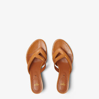 Thong sandals with slender straps that form an F-shaped pattern. Made of light brown ayers. Leather insole in the same color. Light brown leather-covered heel. Made in Italy Composition: 100% Ayers leather, inside: 100% goat leather, 100% calf leather Product Code: 8Y8738AUEEF0FL5