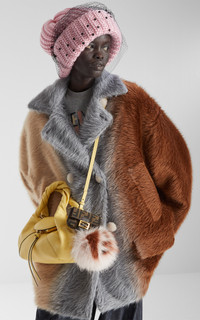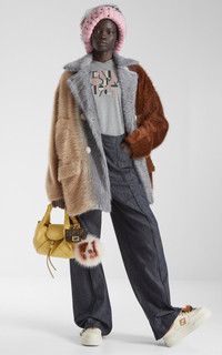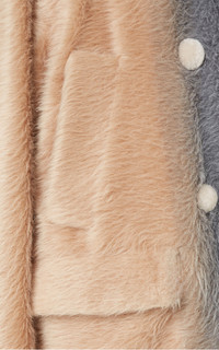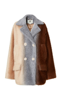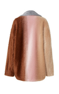 PRODUCT DETAILS - Fall '25 - Button fastening - Slightly oversized double-breasted coat made of alpaca and long-haired wool with a gradient striped print, from powder pink to dark brown. Shirt collar and dropped sleeves. Hand warmer pockets and welt pockets with flap on the front. Covered button closure in matching tone. Lining customized with micro FF jacquard - Composition: 67% Alpaca, 33% Fleece Wool; Lining: 100% Viscose; Buttons: Mother Of Pearl; Button 2: 100% Horn - Dry clean - Made in Italy