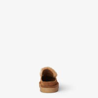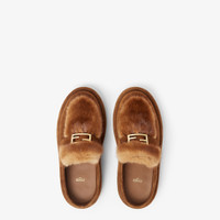 Round-toe apres-ski sabots. Made of brown suede with a tone-on-tone mink fur trim and tongue. Embellished with gold-finish metal Baguette accessory. Chunky brown rubber sole with Fendi lettering on the heel. Made in Italy Composition: 100% calf leather, 100% mink fur, inside: 100% calf leather Product Code: 8R8777AYA0F1TP4