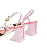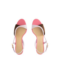 FENDI Arco Sandal featuring asymmetric sandal with wide heel, iconic Arco shape, made of knit and nappa leather, two-tone rubber sole with FF design, rubber heel sole, varnished metal detail on the heel and engraved Fendi logo. 65mm. 75% polyester, 23% polyamide, 2% polyurethane. Made in Italy. DESIGNER STYLE ID: 8X8976-AWKS COLOR: F1V06 PALISSANDRO/ANEMONE