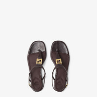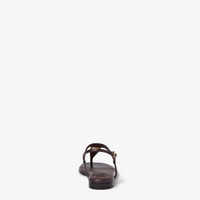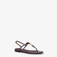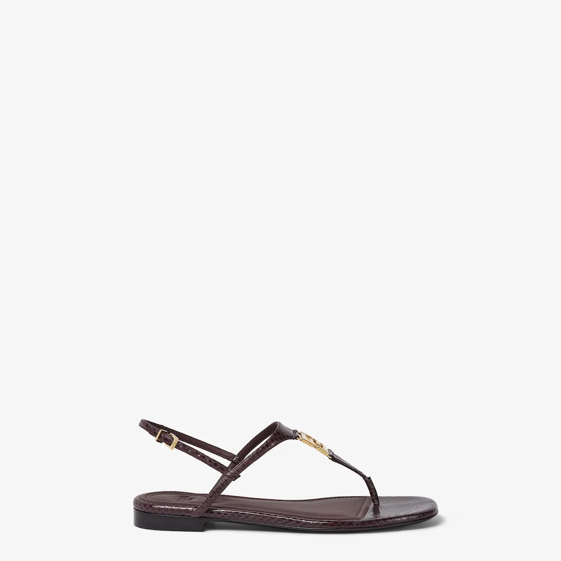 Square toe thong sandals with T-bar and adjustable ankle strap. The metal FF detail, with a special design that includes a functional hinge in the center, makes them comfortable to walk in. Made of dark purple ayers. Leather insole in the same color. Gold-finish metalware. Made in Italy Composition: 100% Ayers leather, inside: 100% goat leather, 100% calf leather Product Code: 8Y8713AUEEF1SIZ
