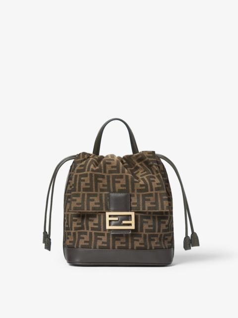 Backpack with a soft, deconstructed design decorated with an FF clasp. Made of iconic, tobacco-brown FF jacquard, with base and details in dark brown calfskin. Features a front flap, magnetic button clasp and drawstring closure, with tone-on-tone leather cords and customized details. Lined internal compartment and gold-finish metalware. Adjustable leather handle and thin shoulder straps. Made in Italy Composition: 75% polyester, 17% cotton, 8% elastane, 100% calf leather, inside: 75% polyester, 17% cotton, 8% elastane Product Code: 8BZ057AVQCF1GL7
