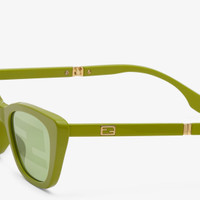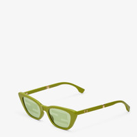Presented in the special fashion show celebrating the 25th anniversary of the Baguette bag. Cat-eye eyewear with folding mechanism. In wasabi acetate, green lenses with silver-mirrored Baguette logo. Temples embellished with gold-colored metal Baguette logo. Special case. Made in Italy Composition: 100% Acetate Model height: null Size worn: null Product Code: FOL052V1WF1KCB Product Care: Wash your glasses every day with warm water and a pH-neutral soap.: Do not use alcohol, aggressive chemical products or disinfectant wipes and do not dry them with paper or other cloths that could scratch them or leave streaks.: Dry with a clean microfibre cloth.: After use, always keep your glasses in their case.
