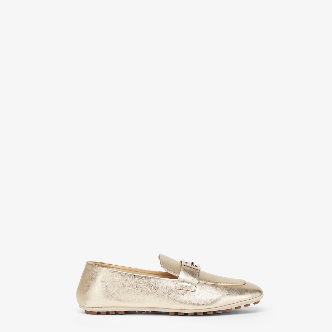 Driving loafers with FF Baguette motif. Suede sole with raised rubber inserts. Made of metallic champagne-color leather. Gold-finish metalware. Made in Italy Composition: 100% calf leather, interior: 100% lamb leather Product Code: 8D8514AN80F0VP1