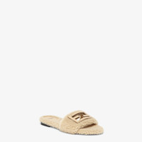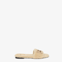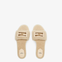 Wide-band slides. Made of beige sheepskin. Embellished with FF Baguette motif in tone-on-tone leather. Made in Italy Composition: 100% sheep fur, inside: 100% lamb leather Model height: null Size worn: null Measurements: - Heel height : 10 mm Product Code: 8R8136AOMKF11W3