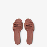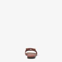 Wide-band slides. Made of sienna tumbled leather and embellished with hand-sewn tone-on-tone macro Selleria topstitches, an emblem of the iconic Selleria stitching handed down through generations of Fendi artisans since 1925. Tone-on-tone FF Baguette motif. Made in Italy Composition: 100% calf leather, inside: 100% calf leather Product Code: 8R8136AQY2F1STQ