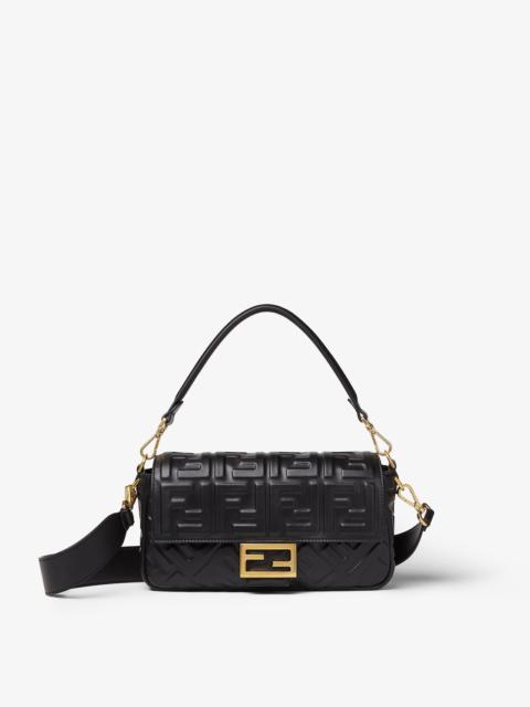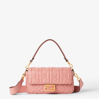 Iconic medium Baguette bag, created in 1997 that went on to become the first “It” bag. Versatile and with timeless appeal, it features the iconic underarm design inspired by the French Baguette bread from which it takes its name. Made of a particularly soft and hard-wearing, pink calfskin with a 3D-effect, embossed iconic FF motif. Decorated with an FF clasp. Featuring a front flap embellished with debossed FENDI lettering, magnetic clasp, tone-on-tone nappa leather-lined internal compartment with a zipper pocket and vintage gold-finish metalware. The bag can be carried by hand or worn either on the shoulder or cross-body for comfort, thanks to the handle and shoulder strap, both detachable. Made in Italy Composition: 100% calf leather, inside: 100% lamb leather Product Code: 8BR600AT57F1TV1